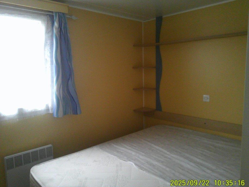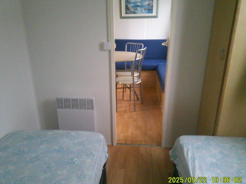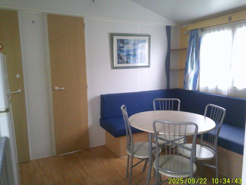 Ce mobile-home offre un agencement convivial avec salon central, idéal pour partager des moments en famille. Le coin cuisine est entièrement équipé, comprenant 4 feux gaz ainsi qu’un grand réfrigérateur, permettant de préparer facilement des repas comme à la maison.