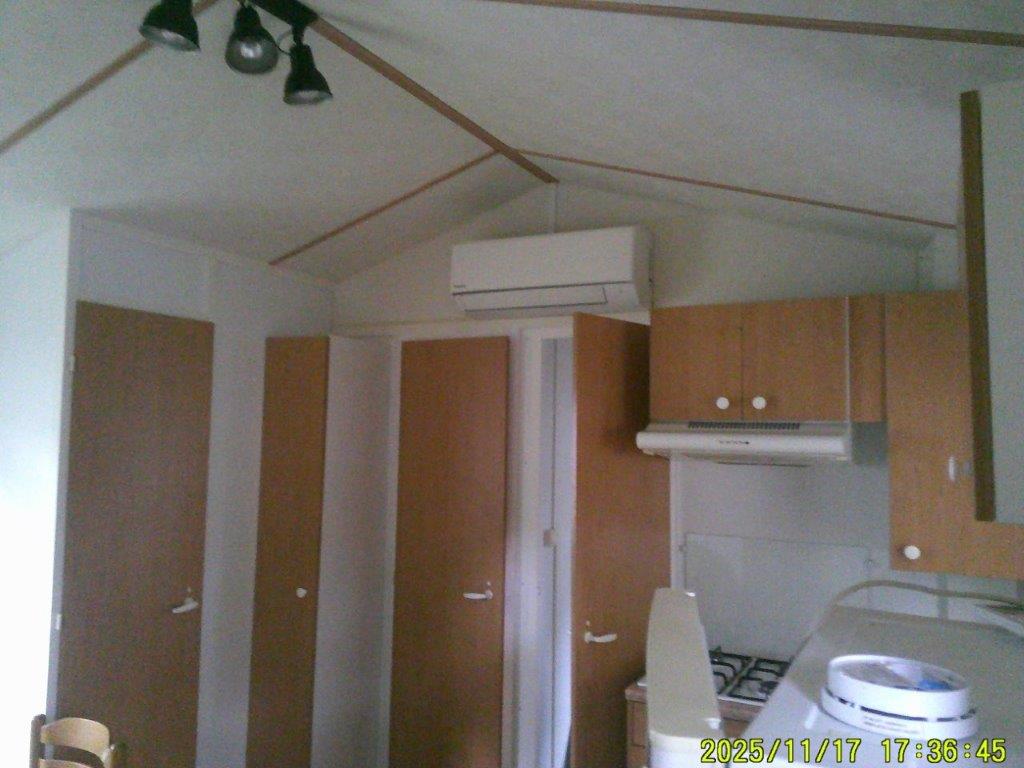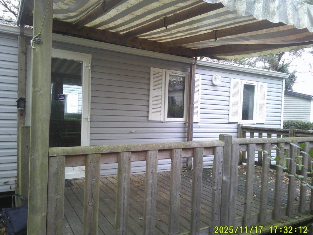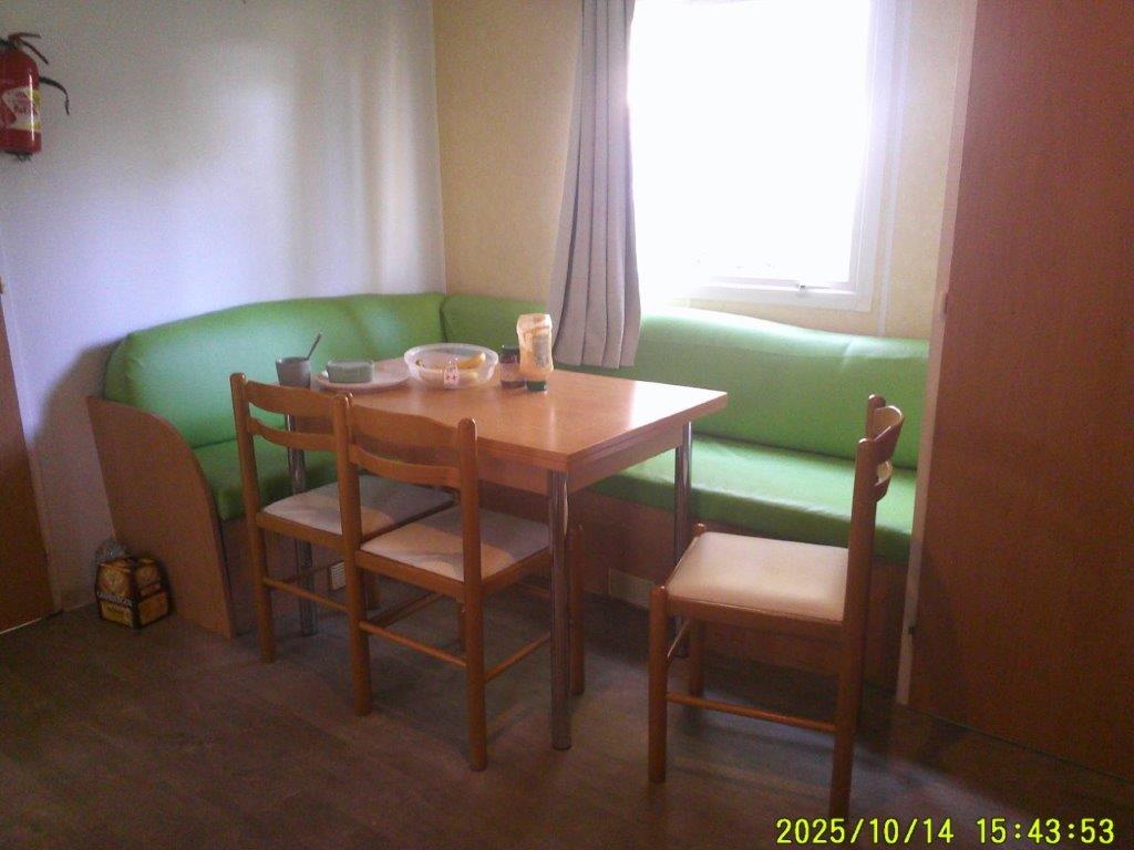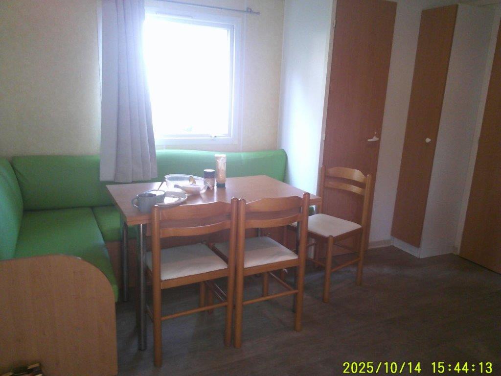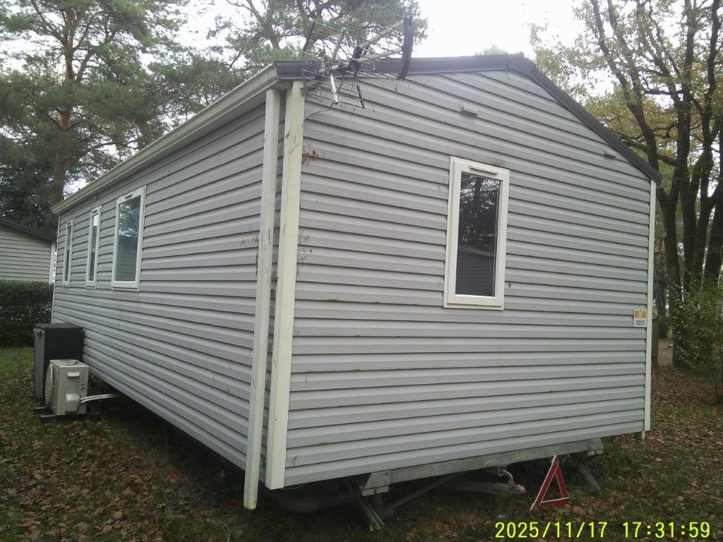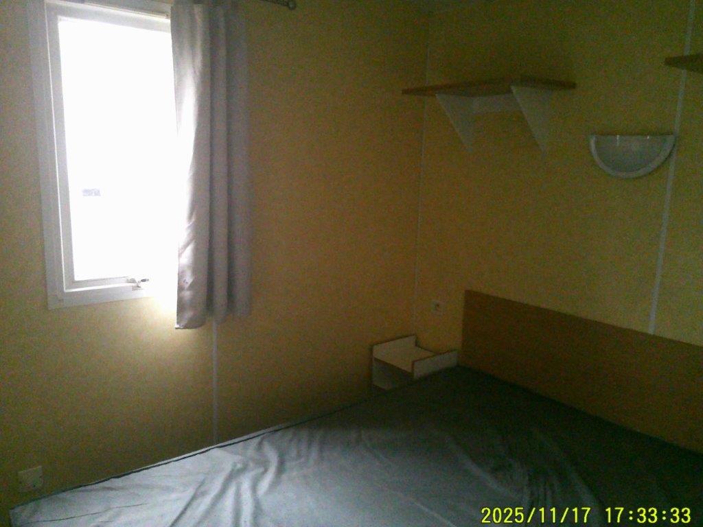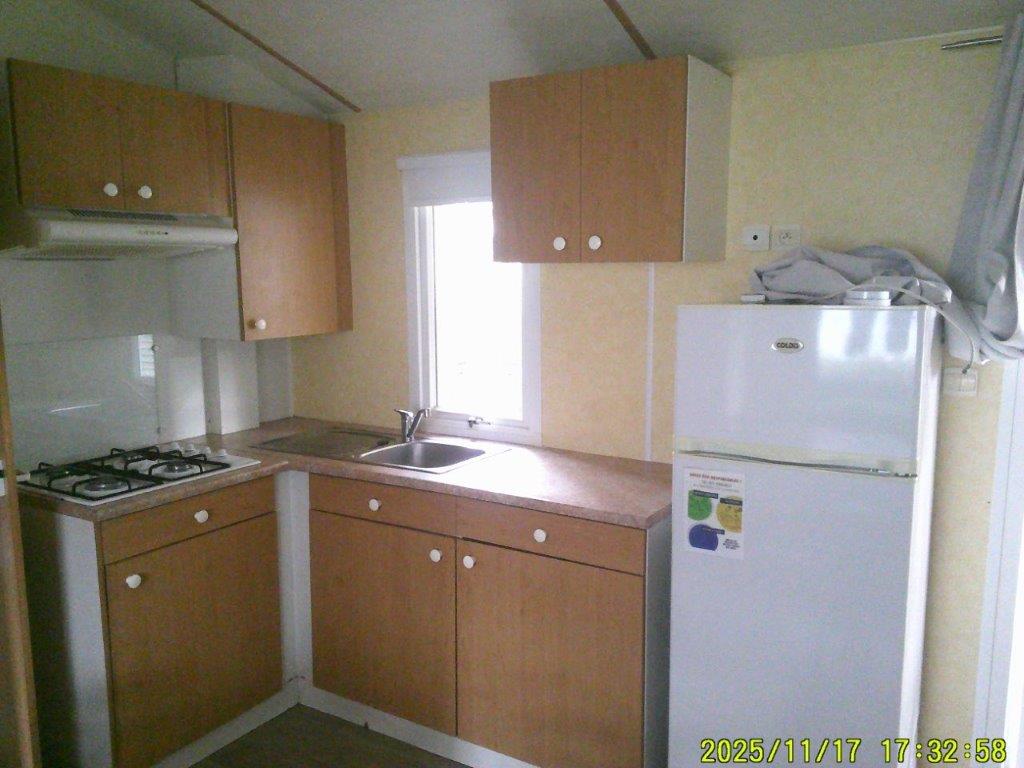 Mobil-home Bermude de 2005, conçu pour un usage 4 saisons et équipé d’une climatisation, offre un espace confortable de 8 m sur 4 m. Il dispose d’un salon central accueillant avec table et chaises, ainsi que d’une cuisine pratique comprenant quatre feux, une hotte et un grand réfrigérateur. La partie nuit se compose d’une chambre parentale et de deux chambres avec lits jumeaux, idéales pour accueillir famille et invités. La salle de bain est équipée d’une douche et d’un lavabo, et des WC séparés apportent un véritable confort au quotidien.
