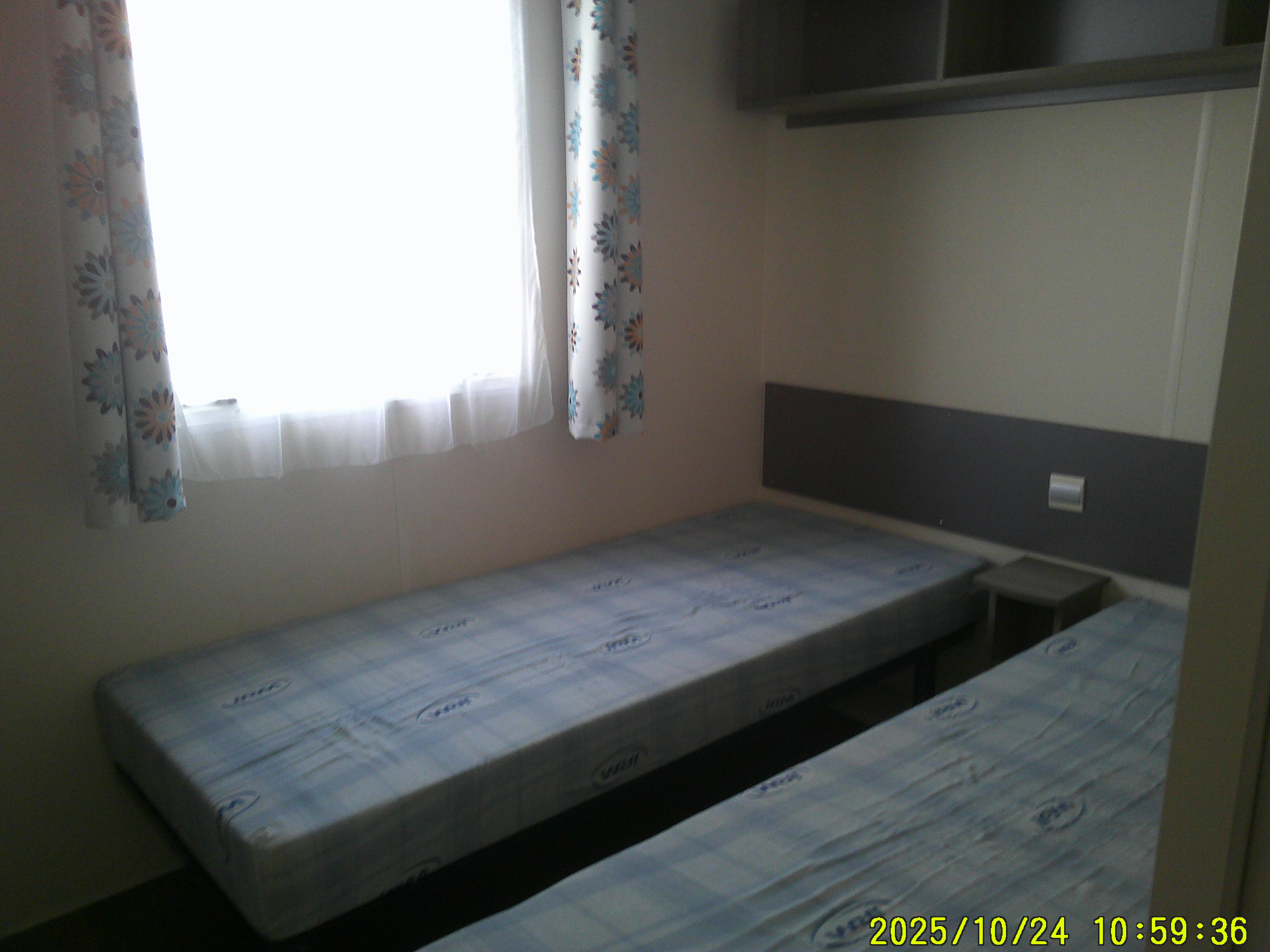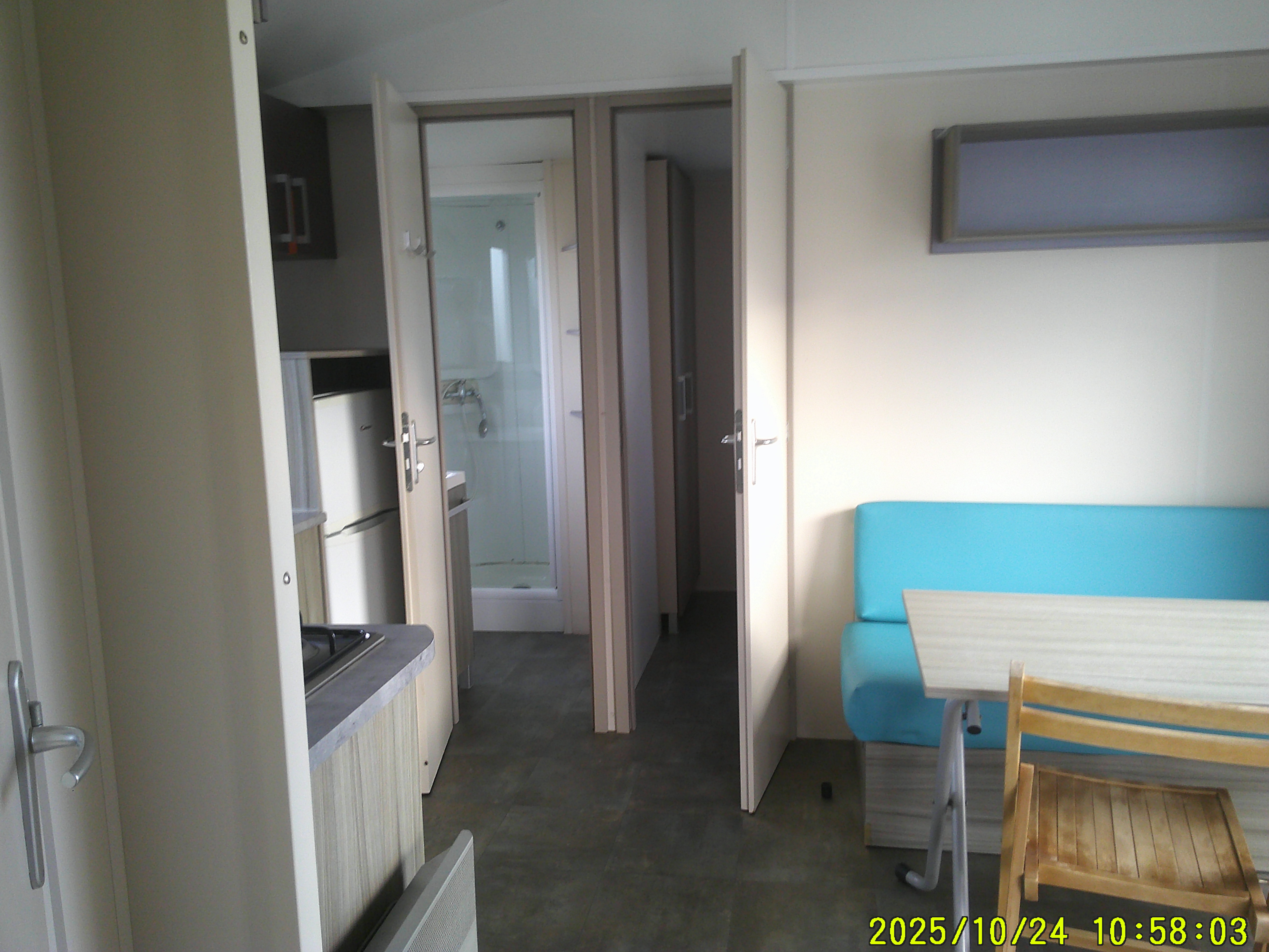 Mobil-home IRM Loggia de 2013, avec terrasse intégrée, mesure 8 m sur 4 m et offre un confort 4 saisons grâce à son convecteur . Il dispose d’un séjour très lumineux aménagé avec table et chaises, ainsi que d’une cuisine équipée de quatre feux gaz et d’un grand réfrigérateur-congélateur. La salle de bain comprend une douche et un lavabo, et les WC sont séparés pour davantage de praticité. Côté nuit, il propose une chambre parentale et une chambre enfant offrant 2 lits jumeaux, idéale pour accueillir toute la famille. Ce modèle combine luminosité, fonctionnalité et confort pour des séjours agréables en toute période de l’année.