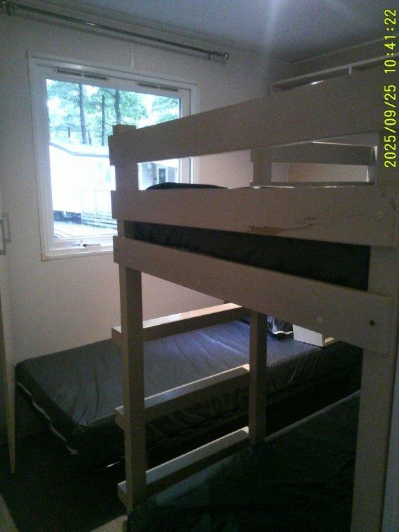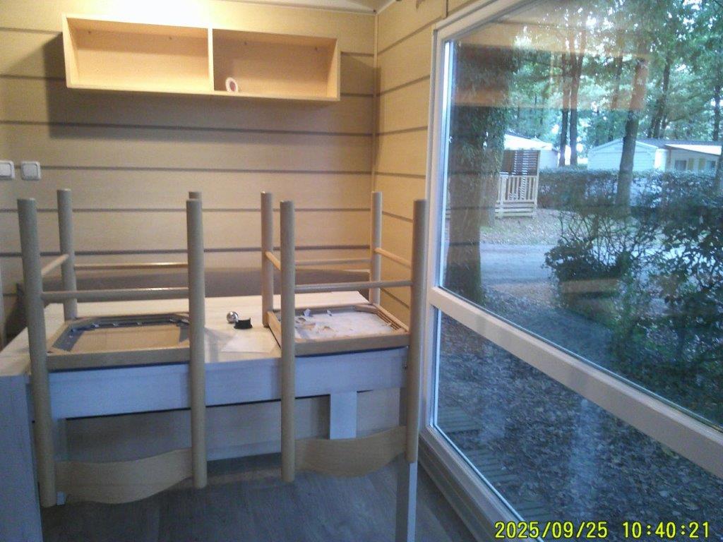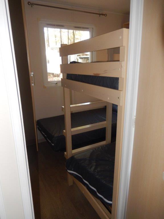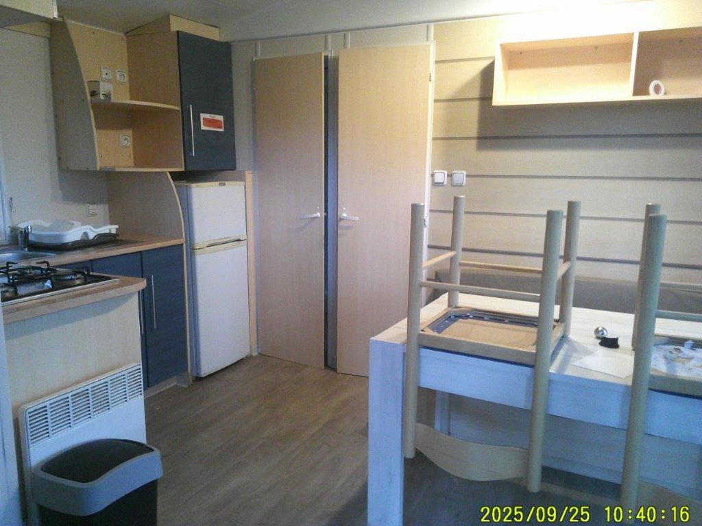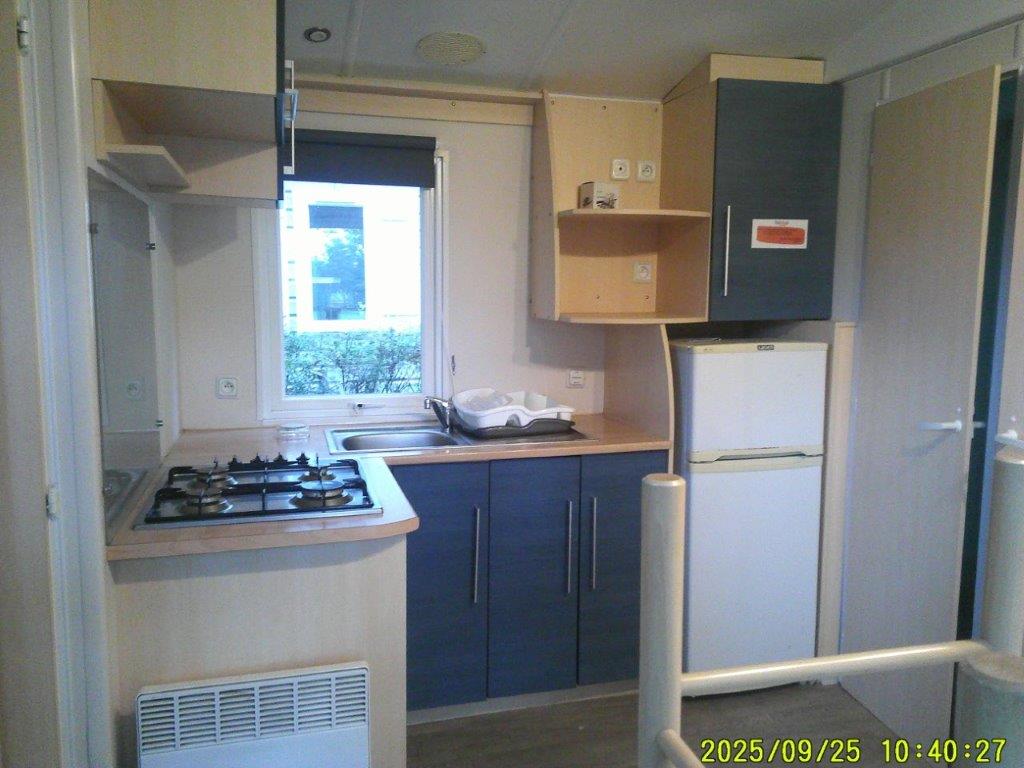 Mobil-home IRM Loggia de 2008, avec terrasse intégrée, mesure 8 m sur 4 m et offre un confort 4 saisons grâce à son convecteur et sa climatisation. Il dispose d’un séjour très lumineux aménagé avec table et chaises, ainsi que d’une cuisine équipée de quatre feux gaz et d’un grand réfrigérateur-congélateur. La salle de bain comprend une douche et un lavabo, et les WC sont séparés pour davantage de praticité. Côté nuit, il propose une chambre parentale (manquant le lit) et une chambre enfant offrant trois couchages, idéale pour accueillir toute la famille. Ce modèle combine luminosité, fonctionnalité et confort pour des séjours agréables en toute période de l’année.
