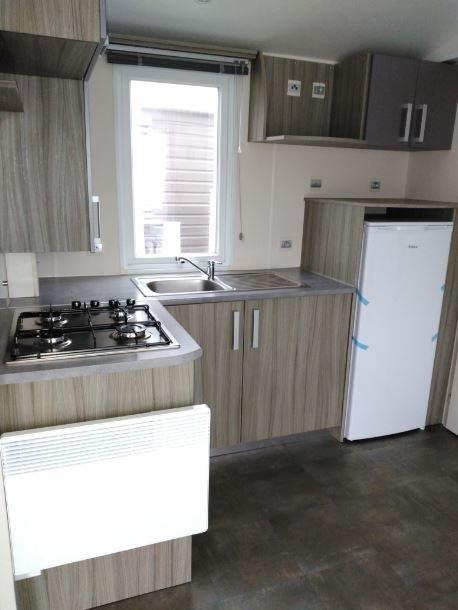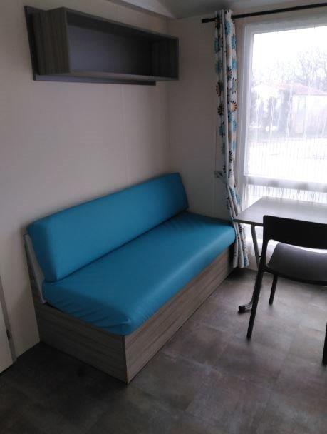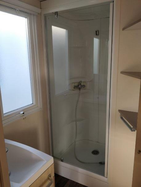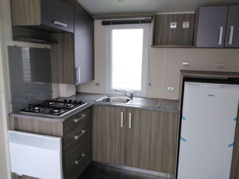 Ce mobil-home 4 saisons offre un confort optimal tout au long de l’année. Il dispose d’une terrasse extérieure intégrée située sur le côté gauche, idéale pour profiter pleinement de l’extérieur en toute convivialité.